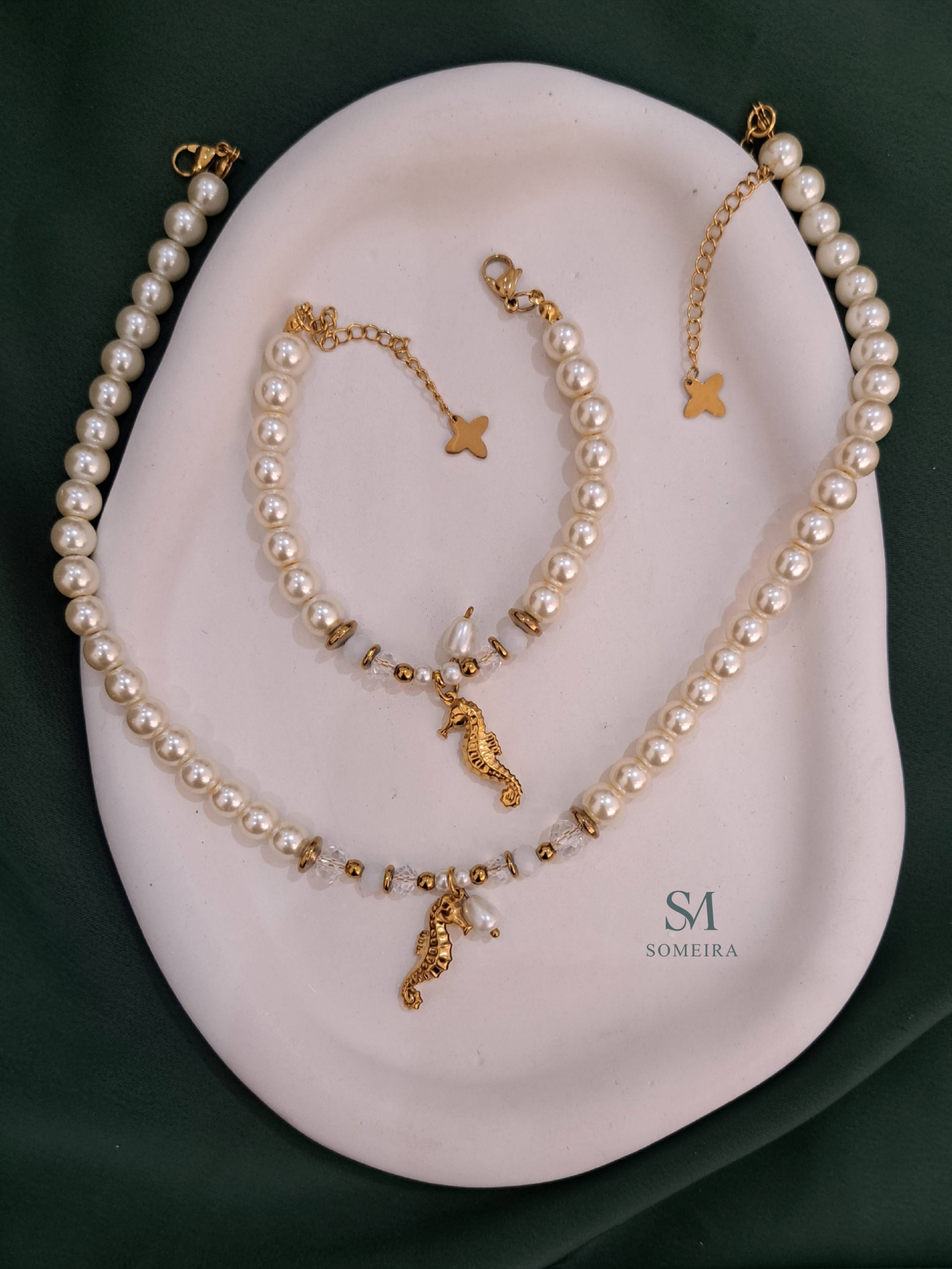 ست گردنبند و دستبند مرواریدی کد ۱۴۵