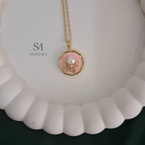 گردنبند کریستالی صورتی کد ۱۲۵
