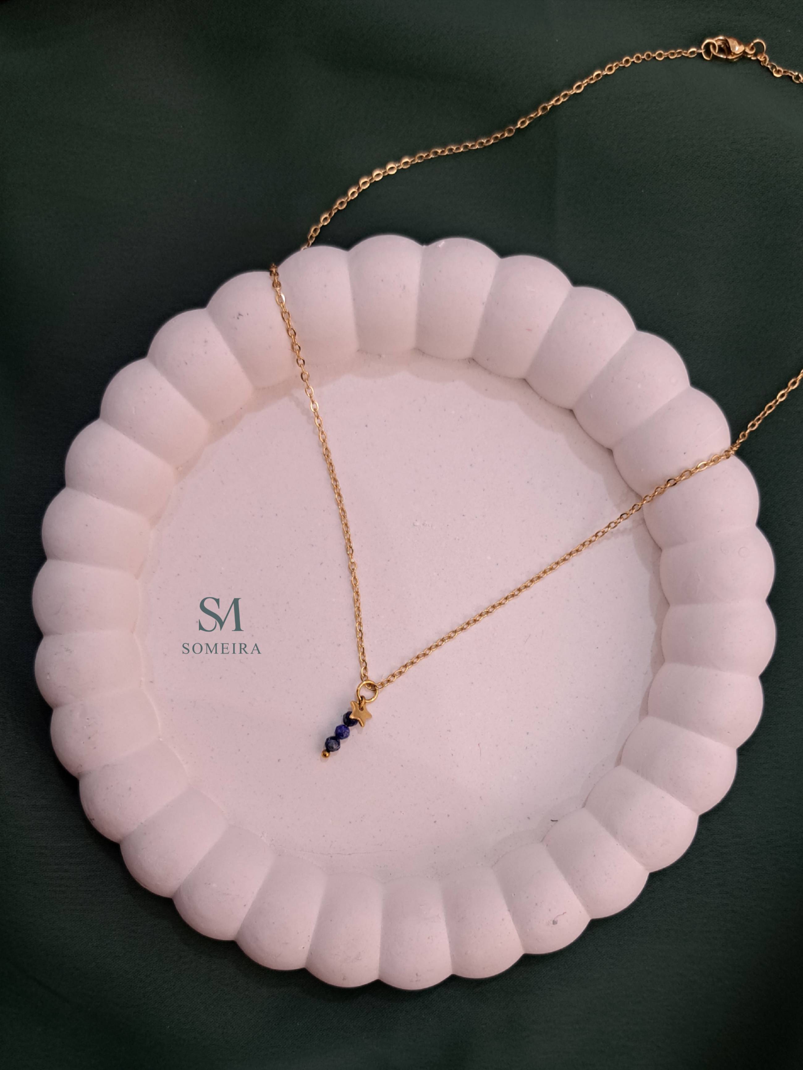 گردنبند با آویز سنگ طبیعی لاجورد کد ۱۶۷