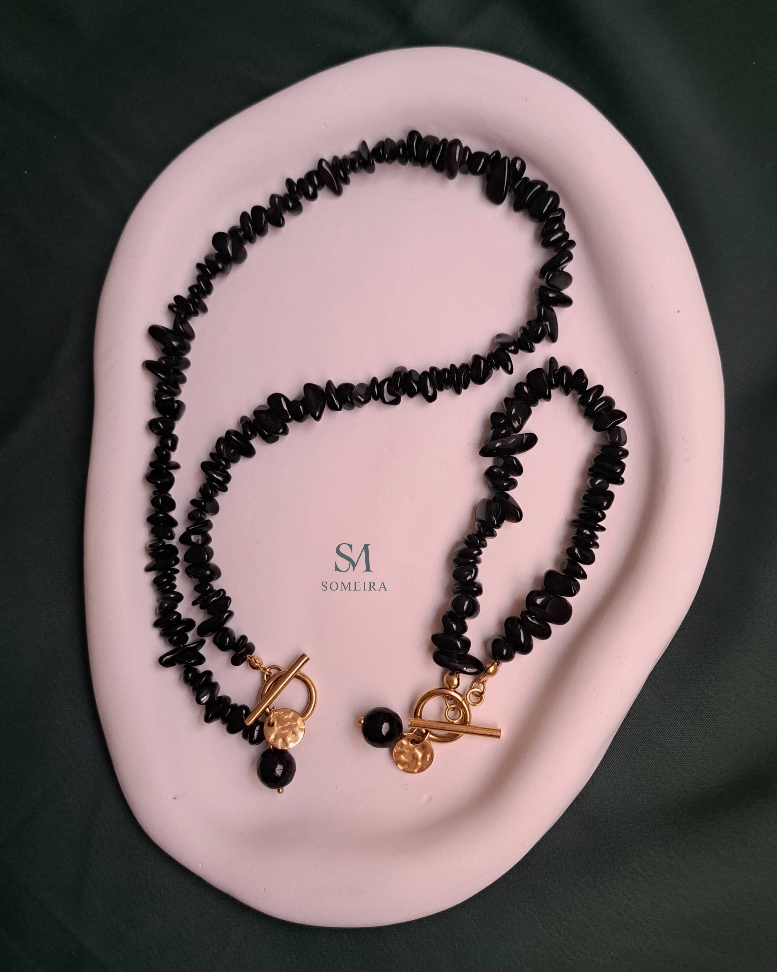 گردنبند و دستبند اونیکس چیپسی کد ۰۰۹
