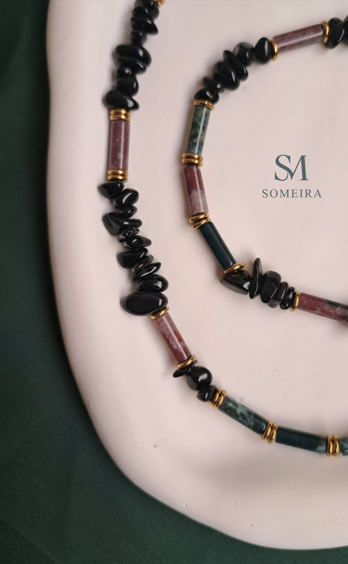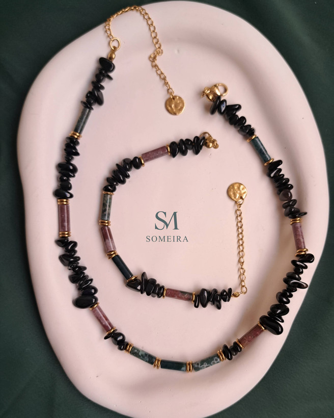 گردنبند و دستبند عقیق خزه ای کد ۰۱۰
