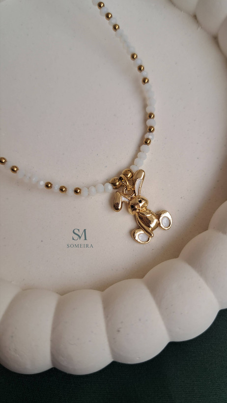 گردنبند کریستالی سفید با آویز خرگوش