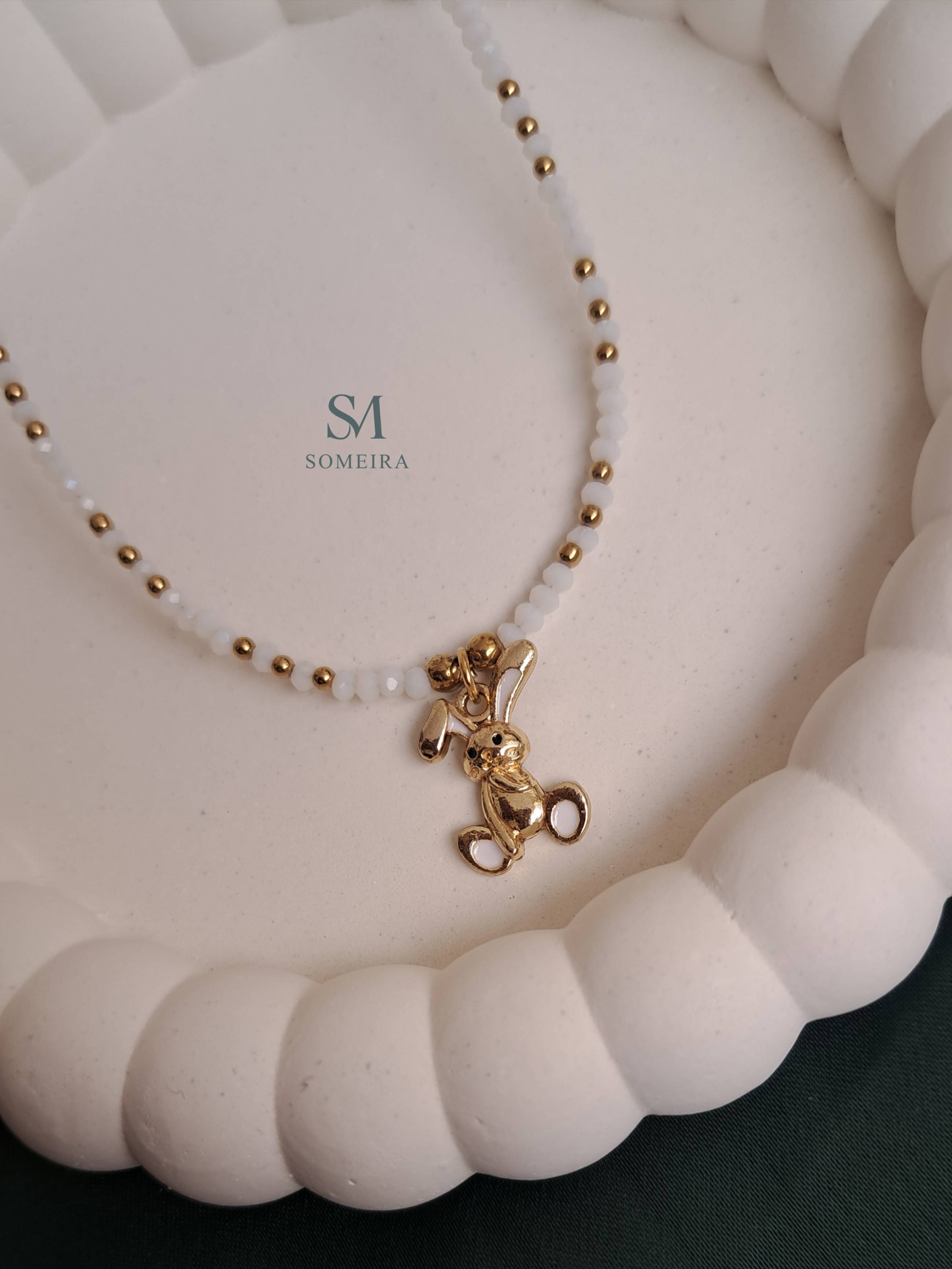 گردنبند کریستالی سفید با آویز خرگوش