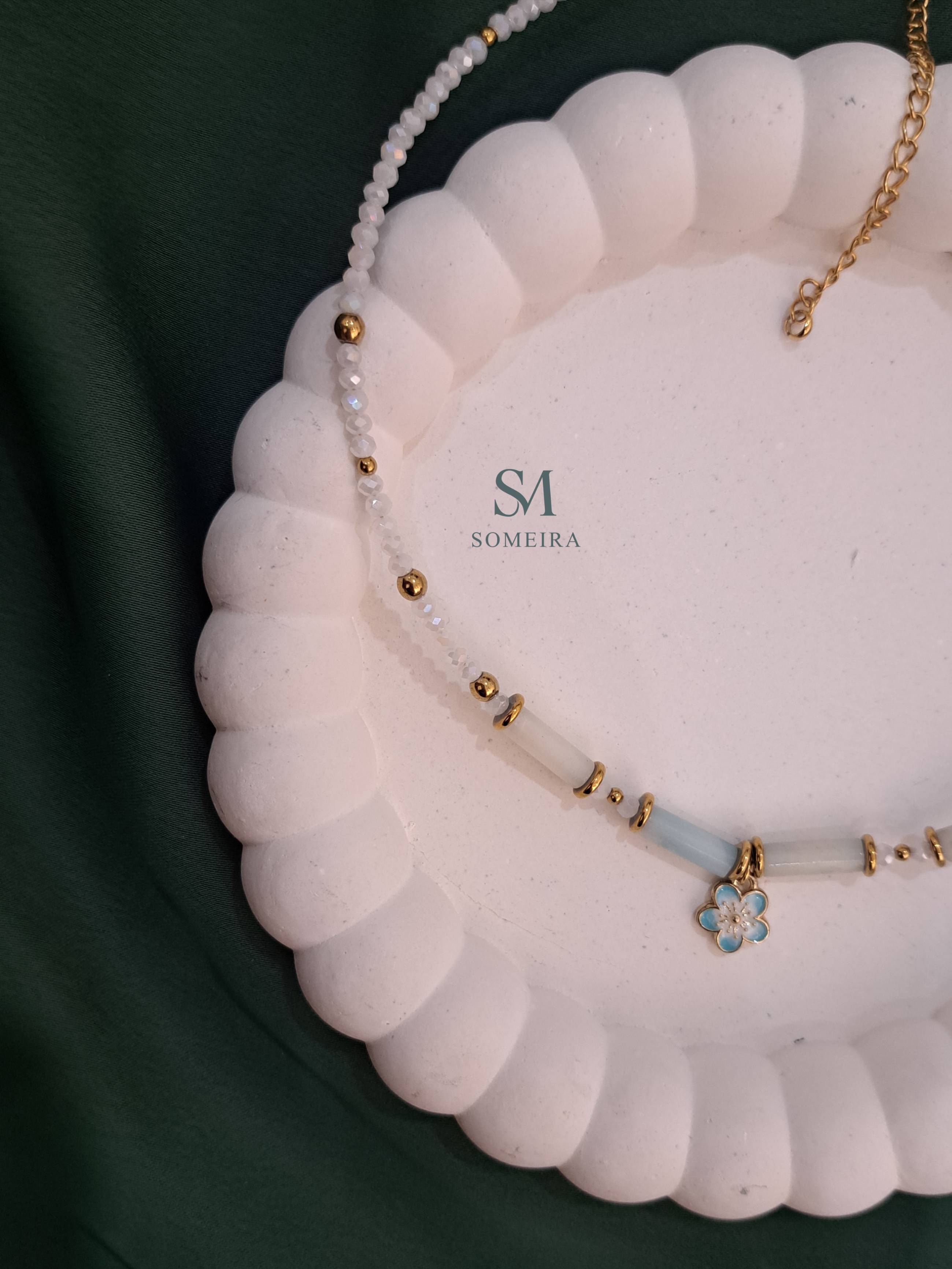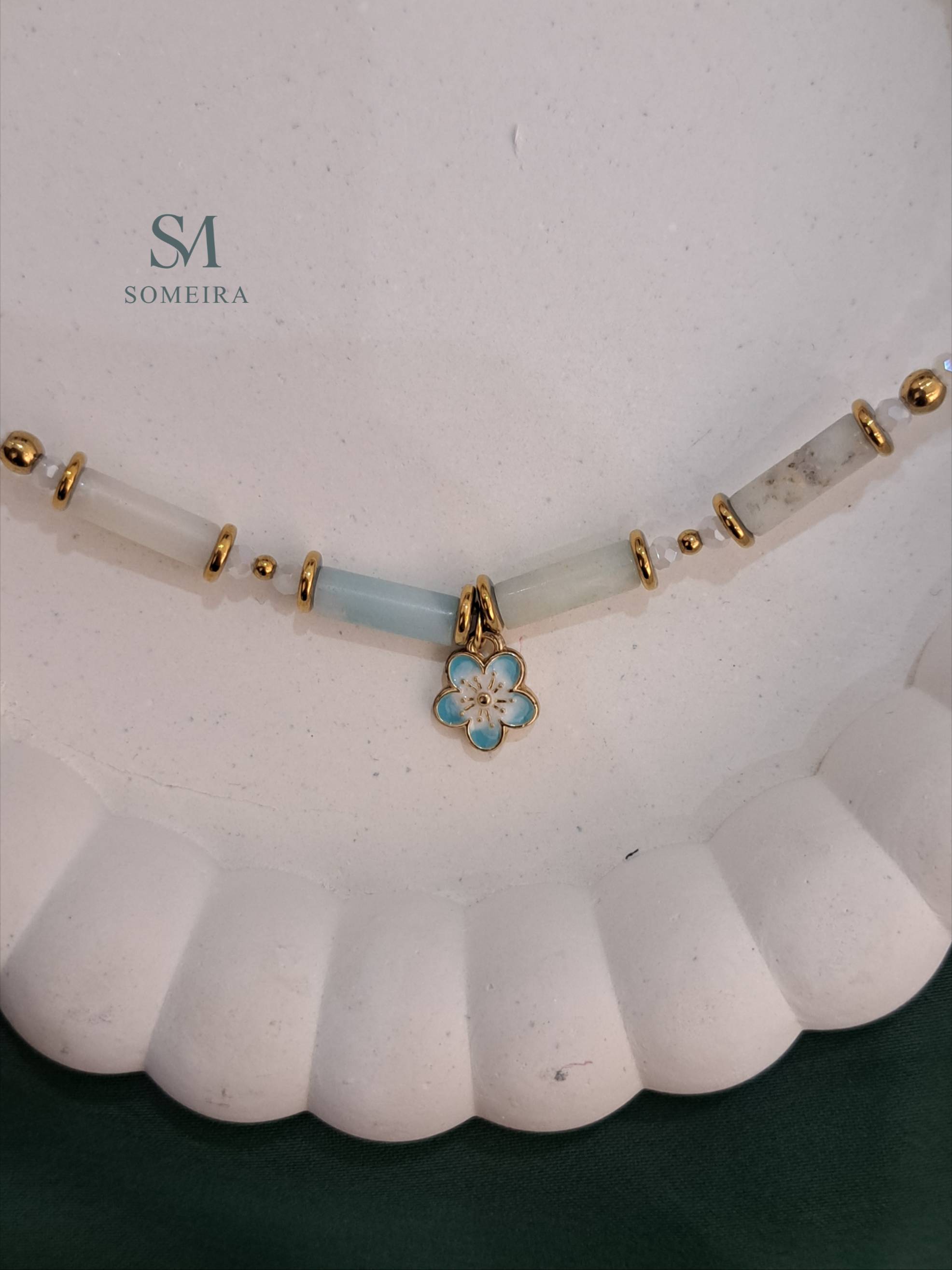 گردنبند با ترکیب کریستال و سنگ طبیعی جاسپر با آویز گل نیلوفر آبی زنجیر، قفل و اتصالات استیل با آبکاری باکیفیت کار رنگ ثابت دارای زنجیر تنظیم سایز درصورت عدم موجودی محصول در واتساپ پیام بگذارید
