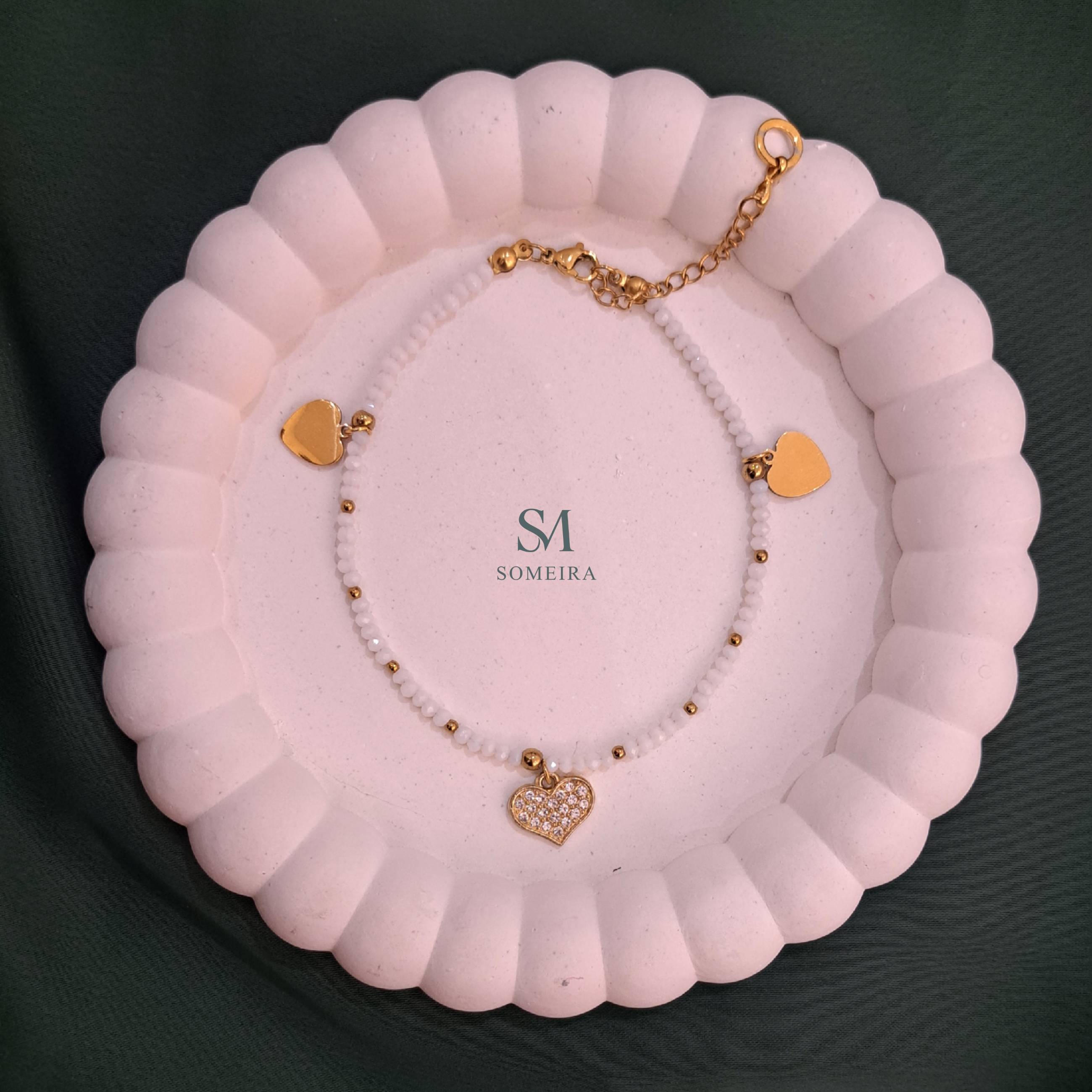 پابند کریستالی ظریف با آویزهای قلبی استیل زنجیر، قفل و اتصالات استیل با آبکاری باکیفیت کار رنگ ثابت متریال وارداتی دارای زنجیر تنظیم سایز درصورت عدم موجودی محصول در واتساپ پیام بگذارید