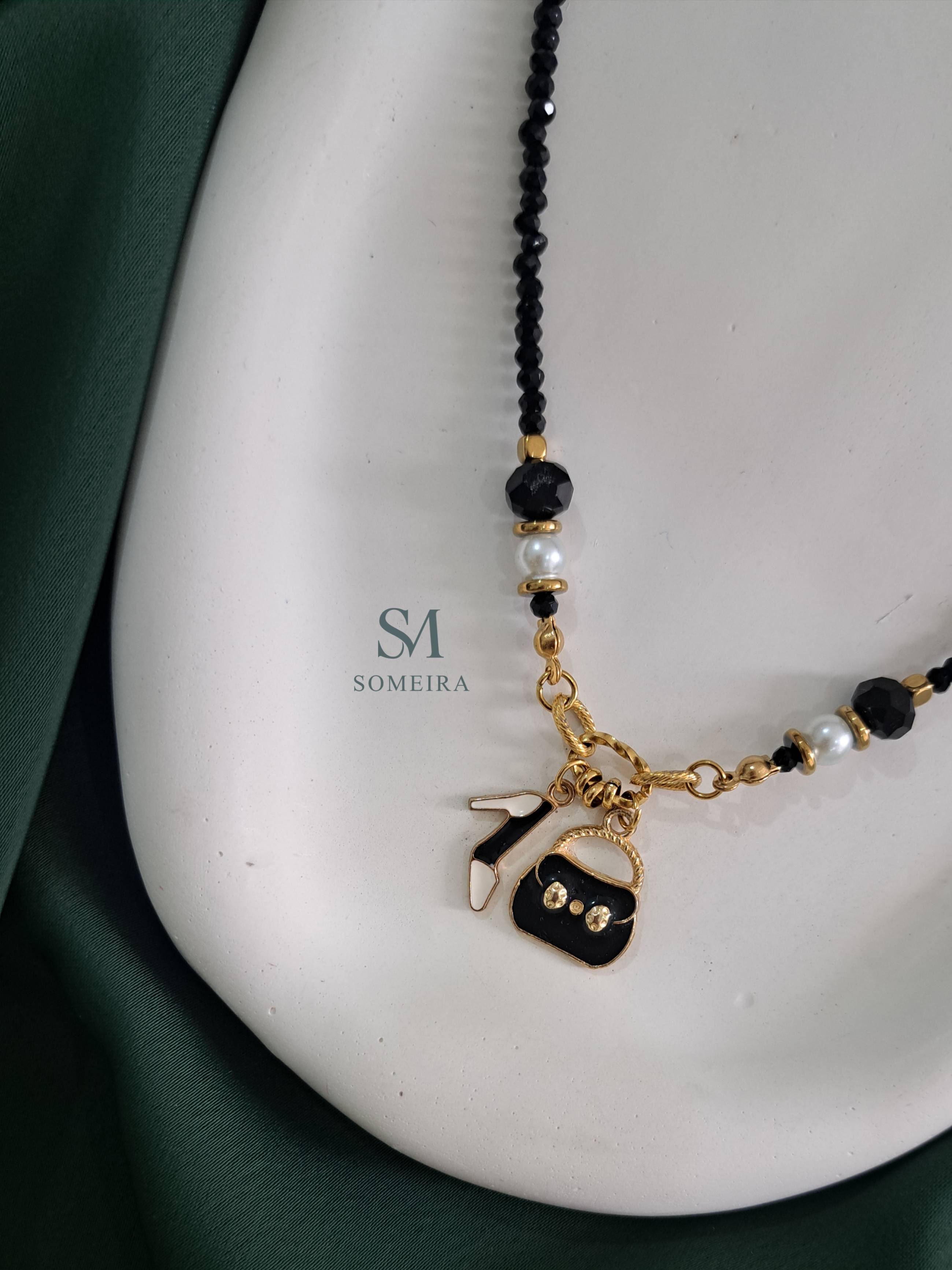 زنجیر،قفل و اتصالات استیل و خرجکار رنگ ثابت سایز گردنبند قابل تنظیم نمی باشد × کریستال مشکی با آویز رنگ ثابت تمامی متریال وارداتی و کار ژورنالی
