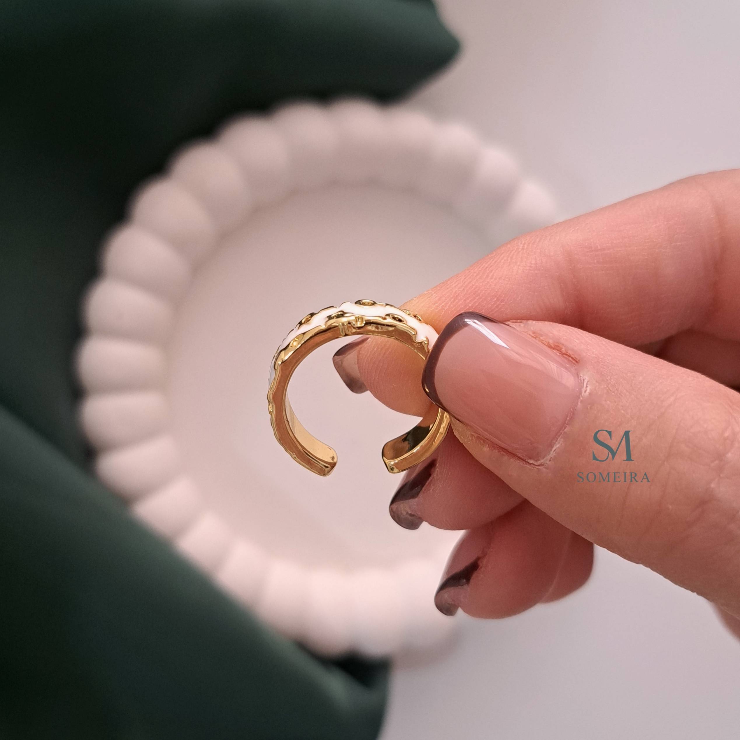 خاصترین مدل انگشتر میناکاری با رنگ سفید و نگین های رنگی رنگ ثابت با آبکاری با کیفیت قابلیت تغییر سایز