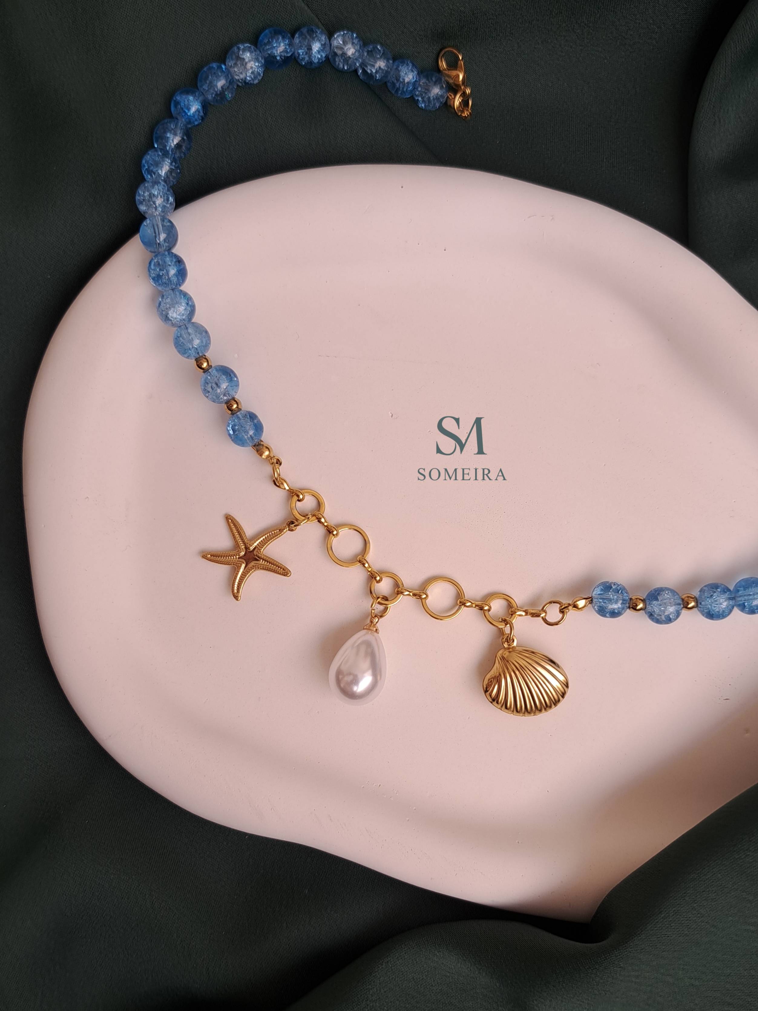 گردنبند چارم با تم دریایی و مهره های آبی